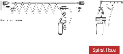 An economic spiral hose energy feed line can be supplied, supported by small trolleys running on galvanised square bar or C rails which are mounted to the upper flange of the overhead hoist beam. The spiral hose is supported on a plastic coated rope attached and tightened parallel to the main beam. This is suitable for travel lengths of up to 10 metres, but it is recommended that the fully extended length of the spiral hose should always be 50% greater than the actual running length required. The spiral hose can be used in category 3 (zone 2), with gasses of explosion groups IIA and IIB. It should not be used in category 2 (zone 1) or group IIC applications.