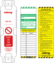 Laddertag is the original and industry leading status tagging system for ladders from Scafftag. Laddertag is a robust and highly visible system, instantly showing the ladder is in date for it’s thorough examination, the ladder’s inspection period and a guide to the pre-use and in-use visual inspections to be carried out by the operative.  This clear system has been adopted by thousands of leading ISO 9000 companies. A complete range of ladder inspection systems are available to control your ladder safety, inspections, maintenance and identification.