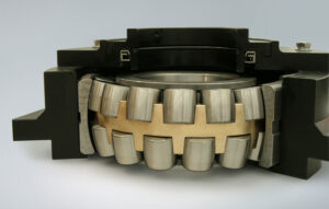 A cut-away of NSK’s pre-assembled, integrated bearing assembly