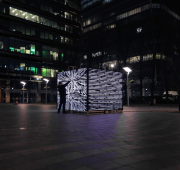 Iregui explained: “My work is based around disrupting people’s expectations of public spaces and making them aware of the places they take for granted. Workers and passers-by at Canary Wharf were drawn in to interact with the cube and see how it threw light and sound on the surrounding square, its buildings and trees. The cube remains in idle mode until someone touches it. Once that happens more people tend to come and join them; many stayed over half an hour or more.”